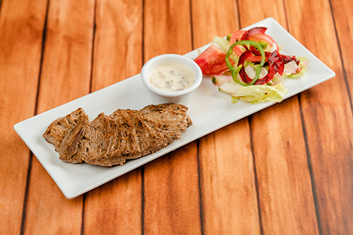 Jugoso y suave filete de res, acompañado de tu salsa favorita: Salsa Mozzarella, Salsa Jalapeña ó Salsa de Hongos.