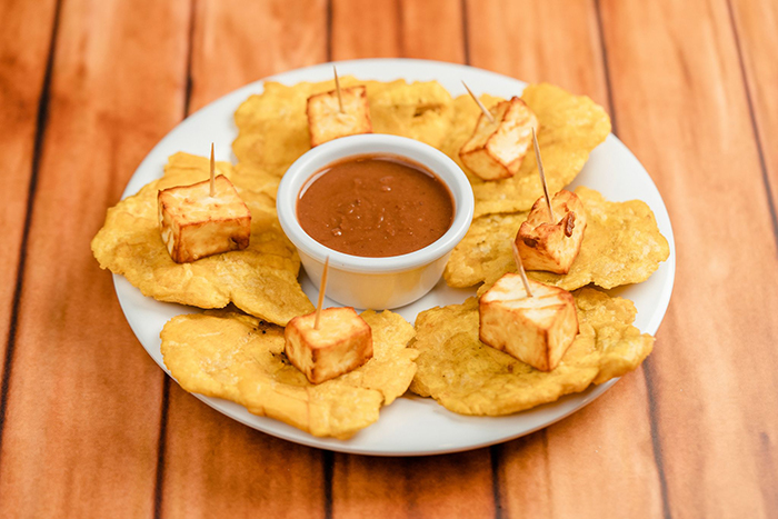 Deliciosos y crujientes tostones con queso frito.